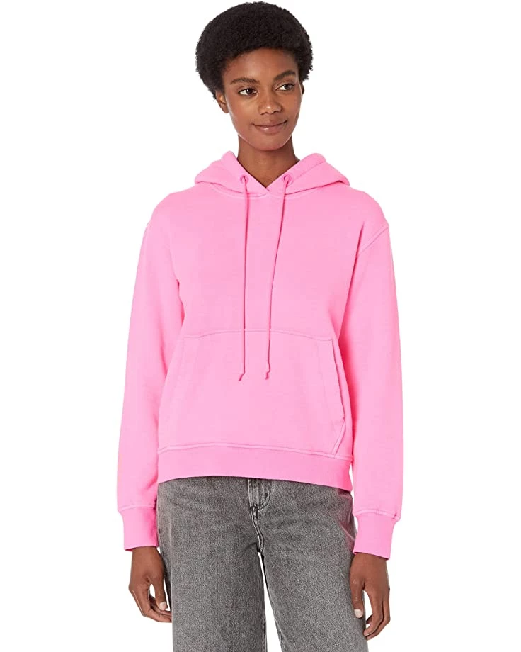 I was excited about this sweatshirt mostly for the neon color. It came in a plastic bag with tags attached, and it was covered in small balls of fabric. It looked as if it had been washed and worn before. I decided to wash and fluff it with hopes that some or all of the fabric balls would come off. Nope, it was worse. I’m stuck with it now, so at least the size and color works for me. I would not recommend buying this garment even on a closet sale like I did. There are way better options out there for a hoodie.