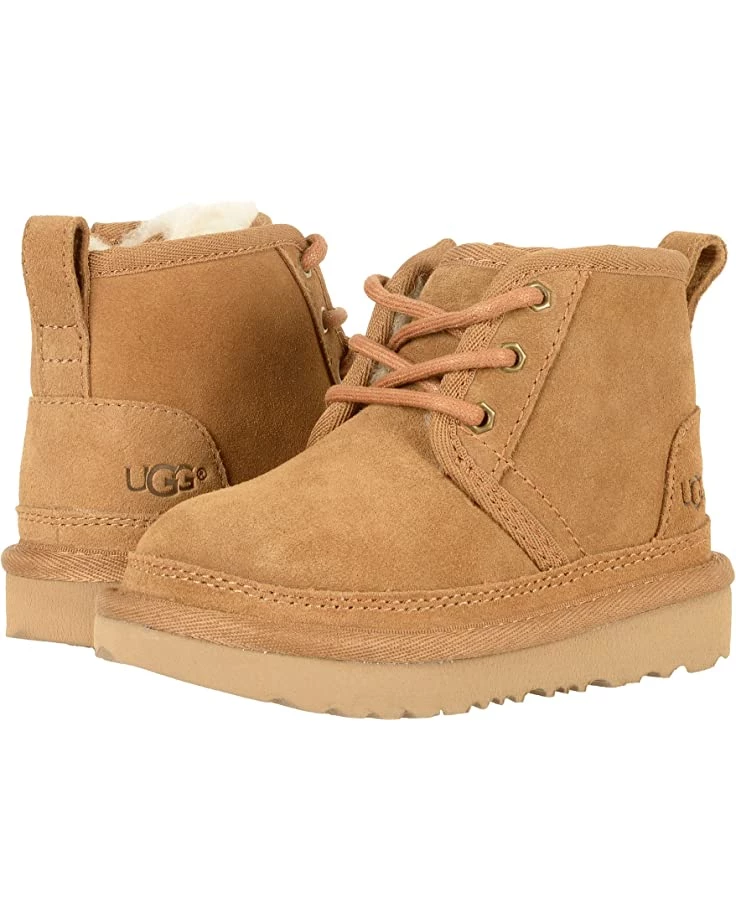 - Warm and soft, the best-selling UGG® Kids Neumel II boot features ultra-soft 17 mm UGGpure™ wool lining to keep your little one cozy. This chukka is built to move the way kids do with a rocker-bottom shape for a barefoot feel and our super-lightweight outsole for traction and durability.