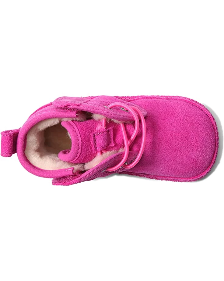 - Elasticized lacing and dual side-panel hook-and-loop closures make this UGG® Kids Baby Neumel bootie a picture-perfect choice for those early steps.